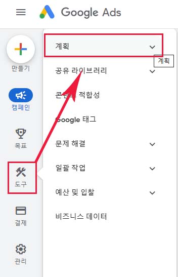 화면 좌측에 있는 도구를 클릭 후 계획으로 들어갑니다.