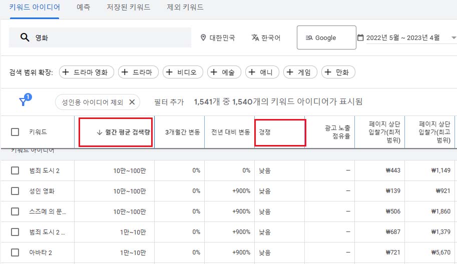 6. 검색량, 경쟁, 광고단가 확인하기