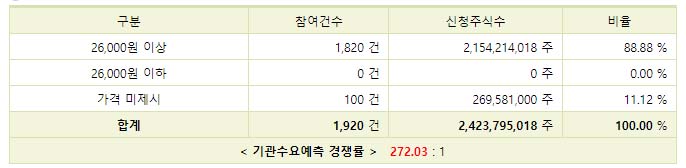 희망공모가 2만 1천 원~2만 6천 원이었으나