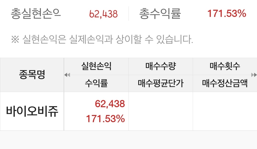 62,438원의 실현손익을 했습니다.