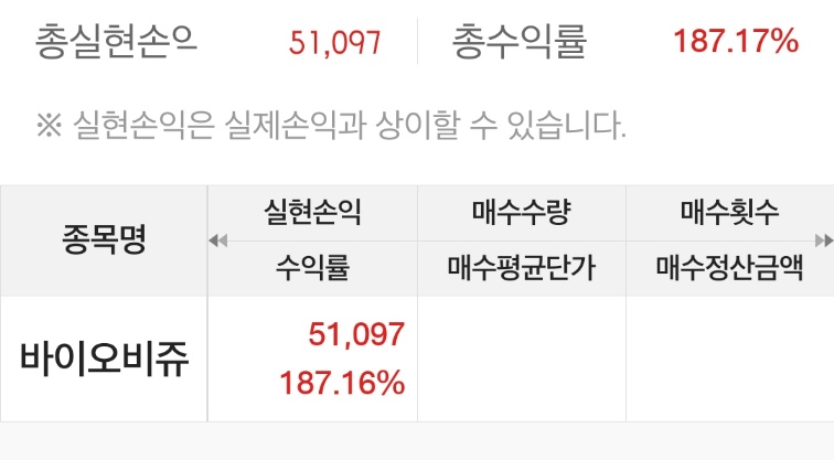 51,097원의 실현손익을 했습니다.