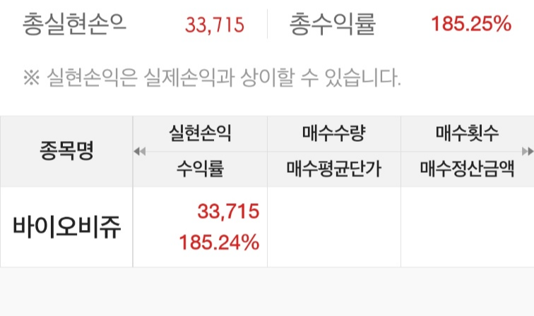 바이오비쥬 덕분에 감사하게도 12만원의 수익을 냈고