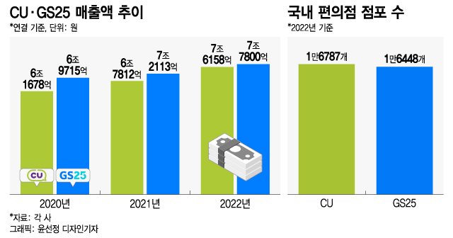 지난해 GS리테일 편의점 부문(GS25) 매출은 7조7800억원으로 CU의 7조6158억원을 뛰어넘으며 1위 자리를 지켰다