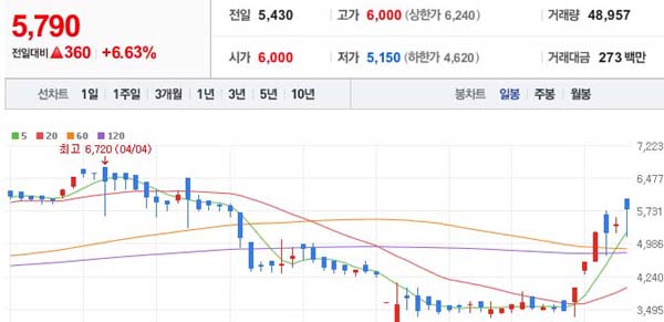 시큐센 현재가는 5,790원으로 거래되고 있습니다.