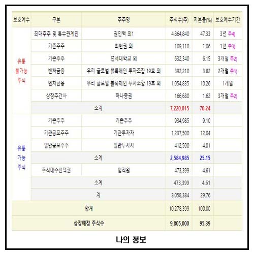 전체의 70.24 %이며, 상장당일 물량은 약 25%