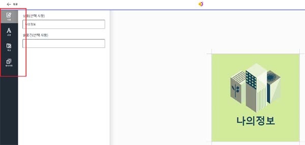 이미지 선택 후 좌측에 이름, 글꼴, 색상, 레이아웃 등을 편집합니다.