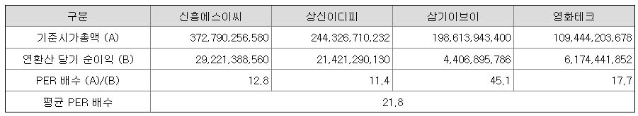 신성이엔티 공모가 산정기업은 신흥에스이씨,상신이디피,삼기이브이,영화테크 4개의 기업입니다.